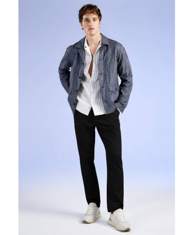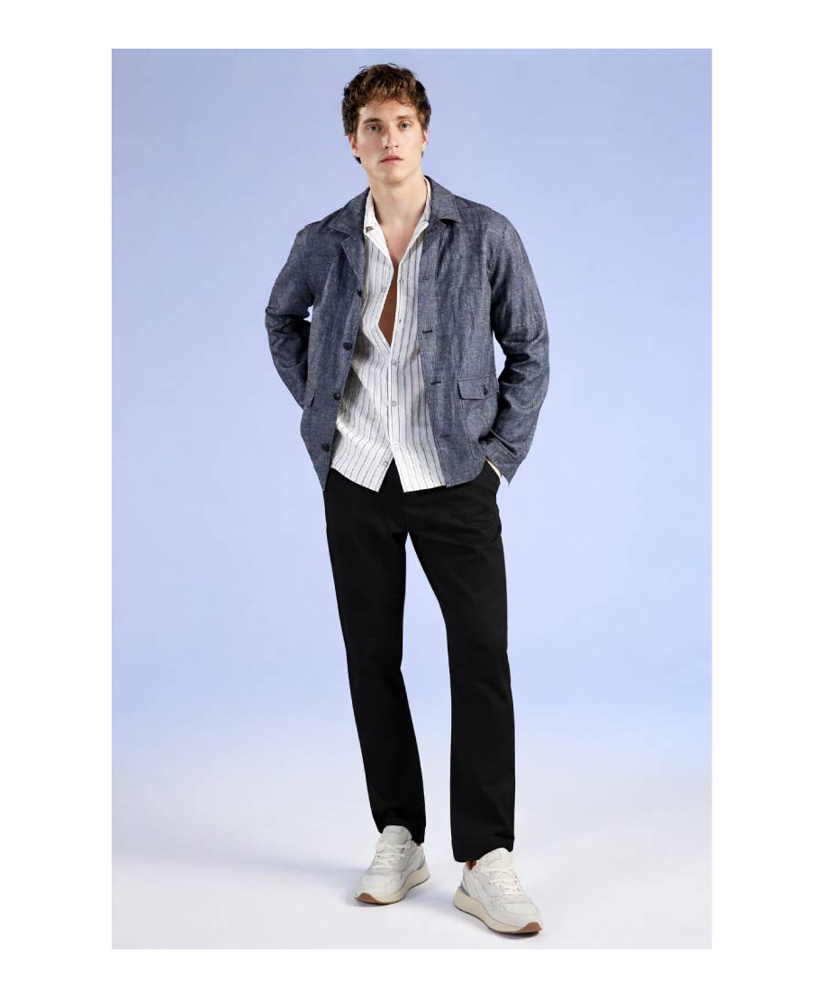Pantalone lungo uomo in cotone stretch con struttura cinque tasche e chiusura zip e bottone. Vestibilita slim ideale per look casual contemporaneo