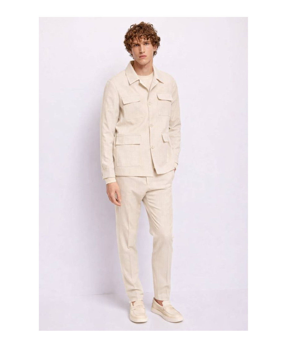 Abito uomo con giacca e pantalone coordinati in tessuto strutturato e taglio sartoriale. Vestibilita moderna ideale per occasioni formali