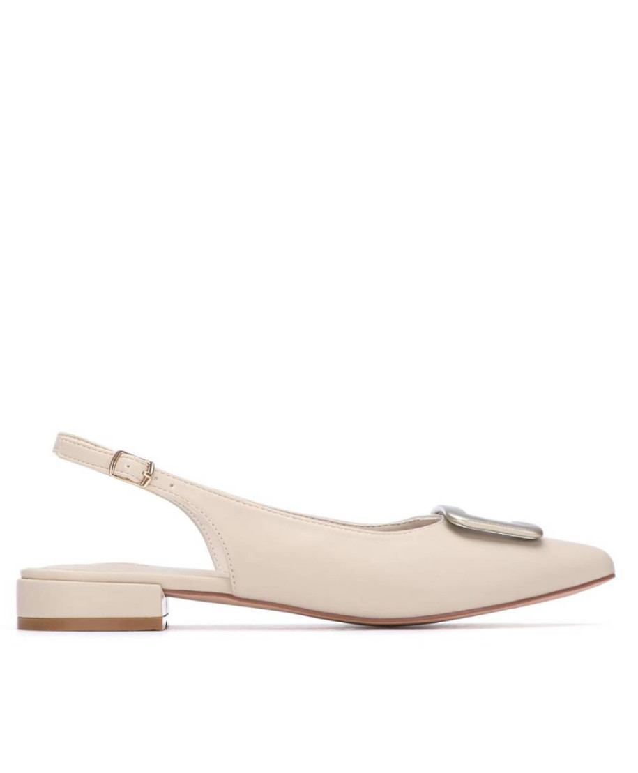 Ballerine da donna di Xti. Realizzate in materiale effetto pelle. Questo modello a punta piatta con tacco di 2 cm offre comfort e stile a ogni passo. Presenta un elegante cinturino alla caviglia con fibbia laterale, che garantisce una calzata sicura e confortevole. Un elemento decorativo rettangolare sul collo del piede, rivestito con lo stesso materiale del resto della scarpa, aggiunge un dettaglio raffinato e armonioso al design. Ideali per l'uso quotidiano o per le occasioni che richiedono un tocco sofisticato senza rinunciare al comfort. Questo modello ha ricevuto la certificazione vegana da PETA (Animal Rights Organization).