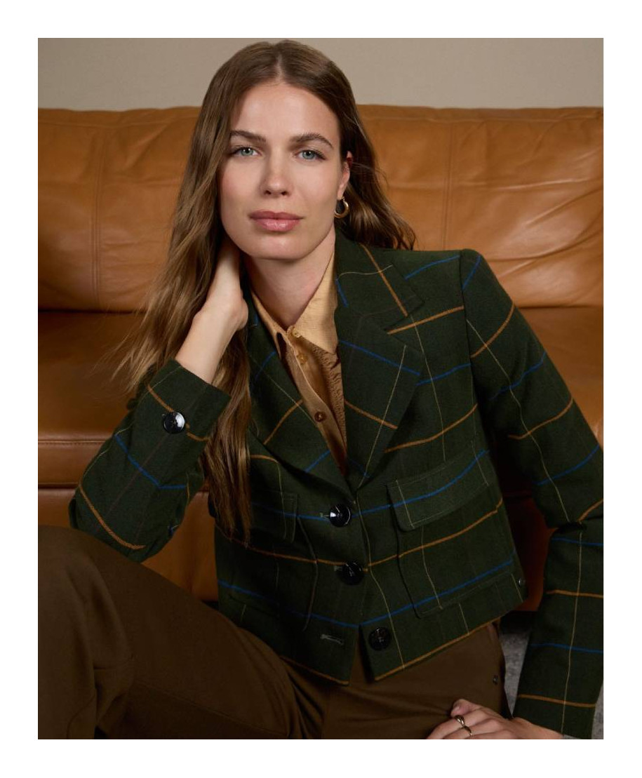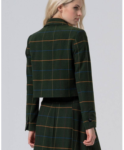 Blazer corto a quadri con fodera stampata. Composizione: 64% poliestere, 33% rayon, 3% elastan