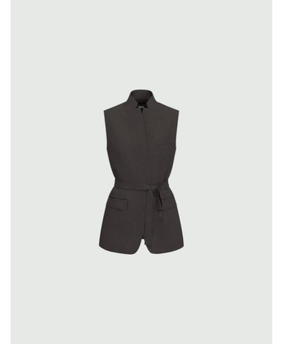 Blazer smanicato in flanella leggera di misto lana con fodera interna. Fit dritto. Scollo con rever. Chiusura con cintura. Tasche laterali con doppio filetto e patta. Spacco centrale posteriore.