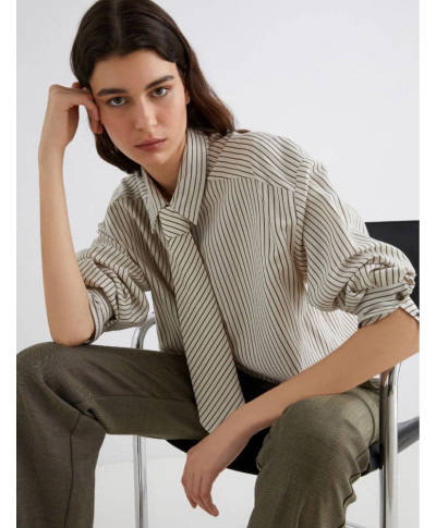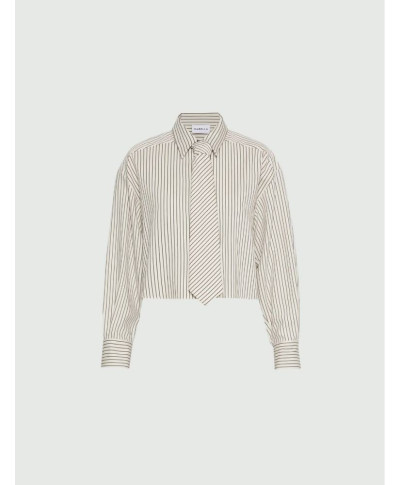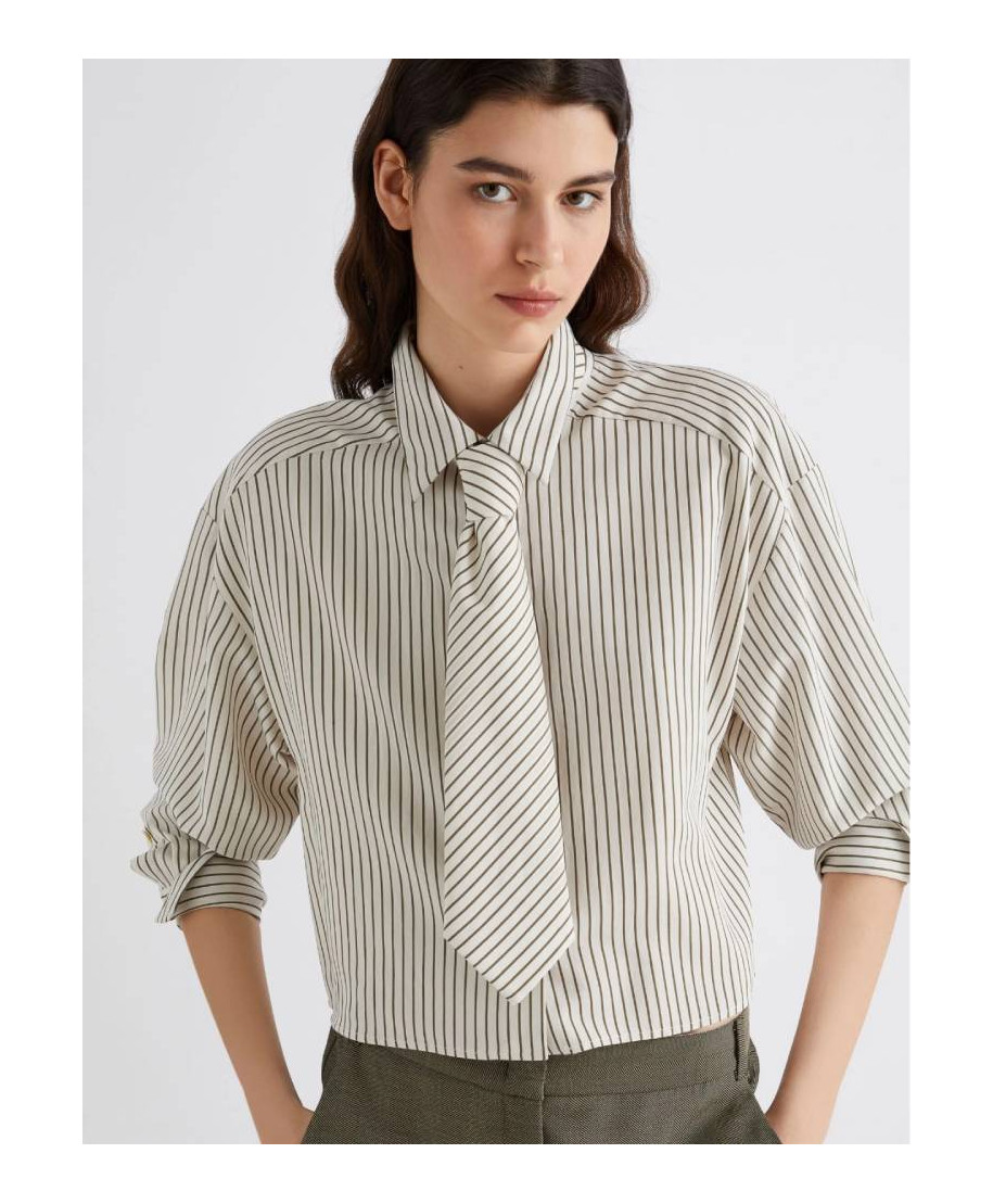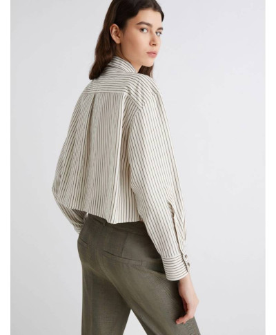 Blusa in twill di misto viscosa lavato. Fit dritto con taglio cropped in vita. Collo a camicia. Abbottonatura nascosta e doppio bottone al polso. Carrposteriore con cannoncino.