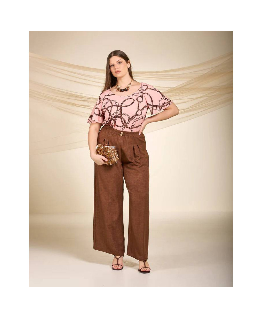 Blusa, curvy, con fondo asimmetrico e motivo di nodo allo scollo- 50% Poliammide, 50% Viscosa. Ideale per look quotidiani.