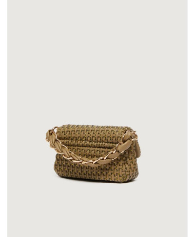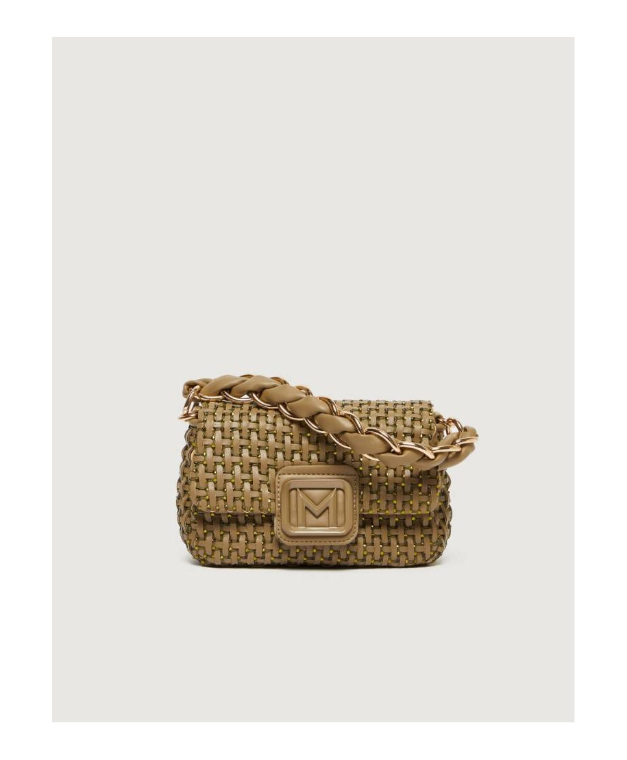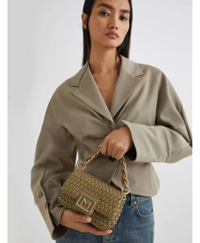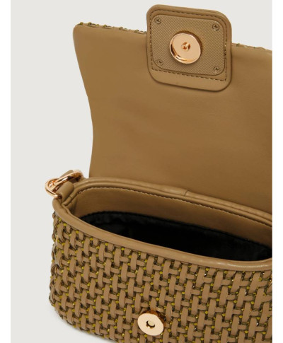 Borsa Le Muse small con intreccio e strass. Portata a mano e cross body con tracolla lunga rimovibile. Chiusura a patta con calamita e placca logata. Dimensioni: 17,5 x 5,5 x 11,5 cm.