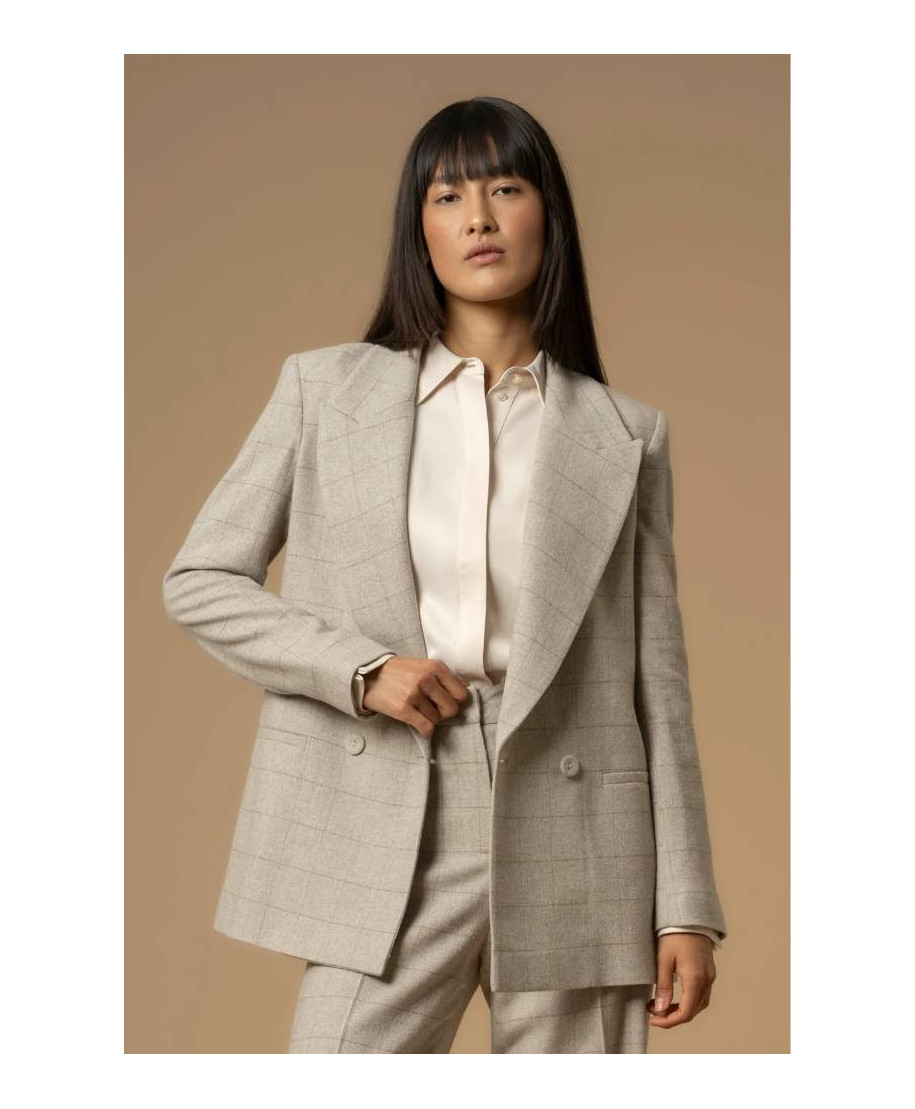 Il tessuto a quadretti tono su tono regala a questa giacca doppiopetto della capsule Pure Verve un mood perfetto per affrontare con stile le giornate fredde. Il capo presenta taglio dritto, revers e tasche a filetto sui fianchi.
