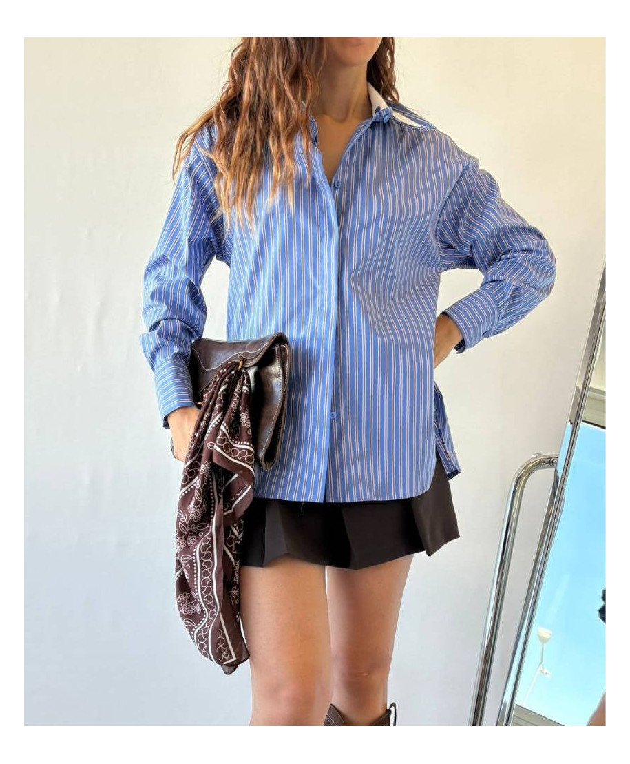 Camicia rigata over con doppio collo. Composizione: 71% cotone, 25% poliammide, 4% elastan.
