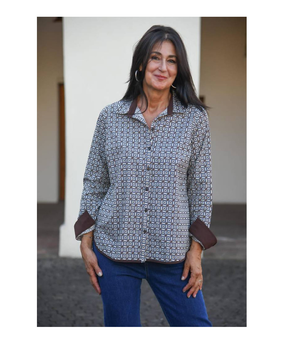 Camicia fantasia in cotone elasticizzato. Composizione: 97% cotone, 3% elastan.