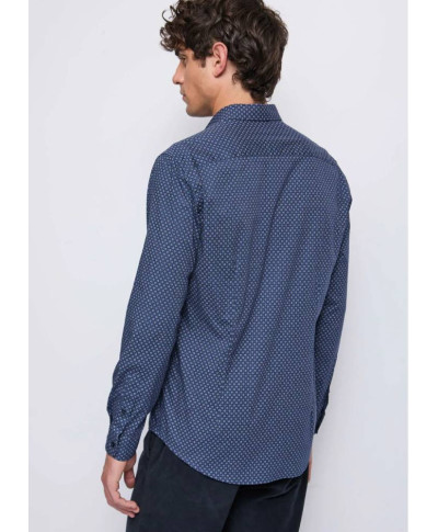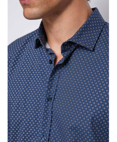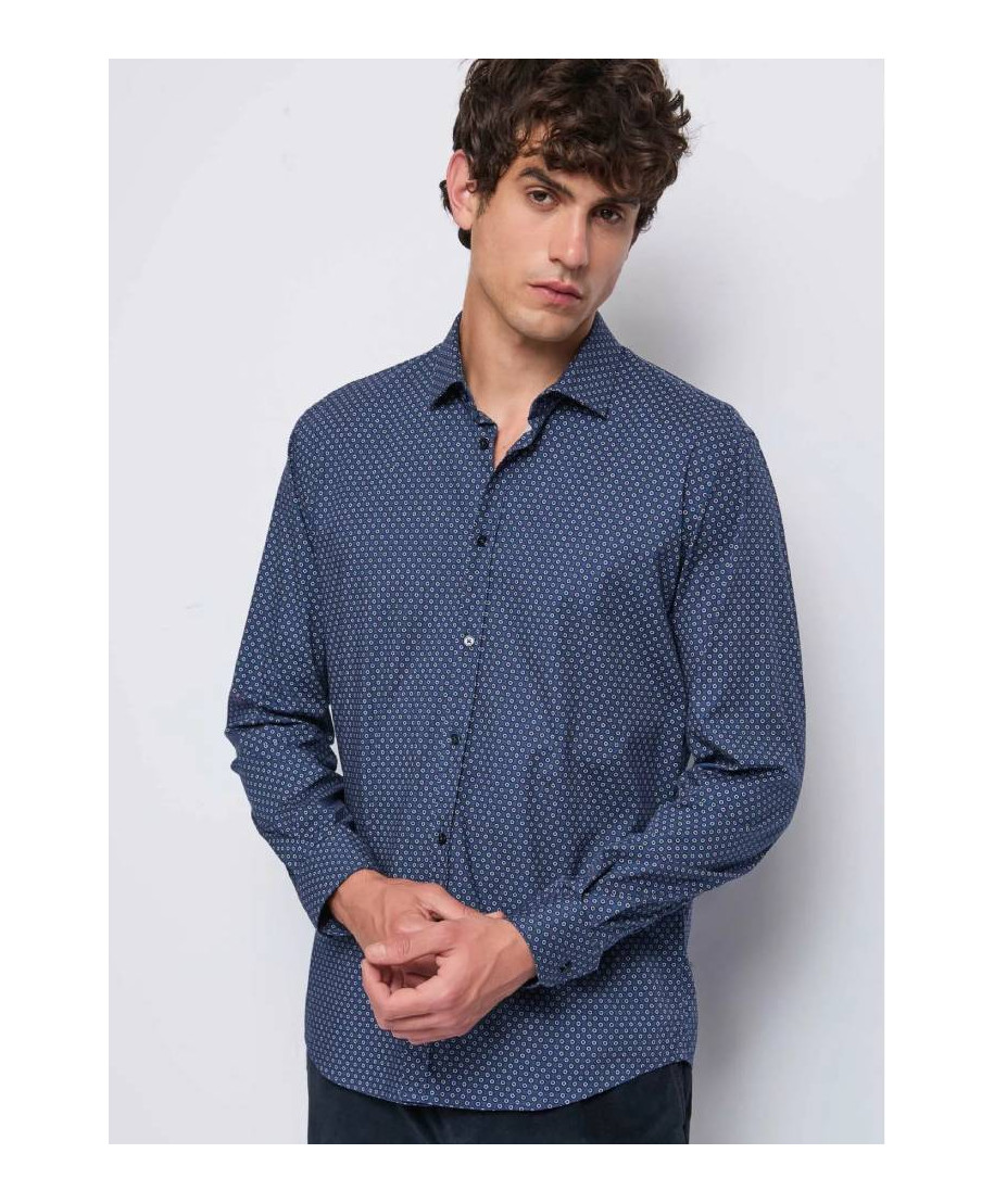 Camicia slim in cotone con stampa all over e colletto classico italiano. Maniche lunghe e polsi con bottoni. Chiusura con bottoni. Composizione: 97% cotone, 3% elastan.