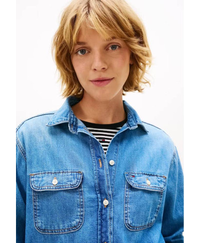Camicia denim relaxed donna Tommy Jeans dalla linea moderna, ideale per outfit primavera estate.