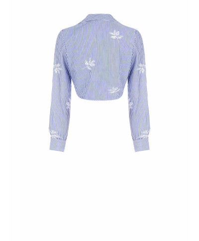 Camicia cropped popeline ricamato. Perfetta per look da ufficio e tempo libero e per valorizzare il tuo stile quotidiano, modello .