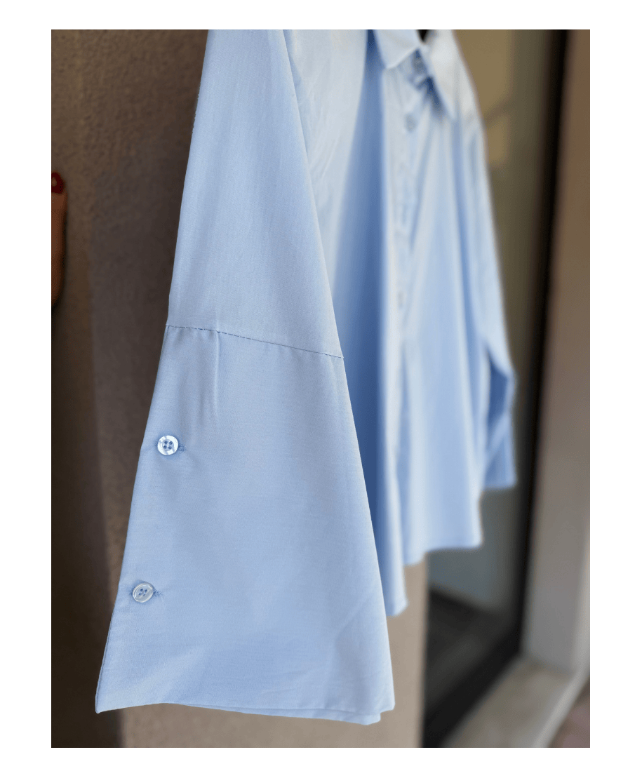 Camicia leggermente cropped con manica ampia a 3/4 con bottoncini. Composizione: 100% cotone