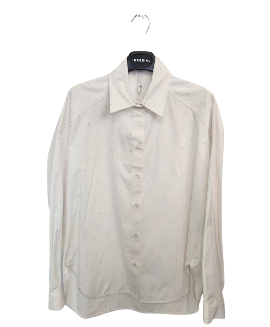 Camicia con brillatini over. Composizione: 52% poliestere, 48% cotone