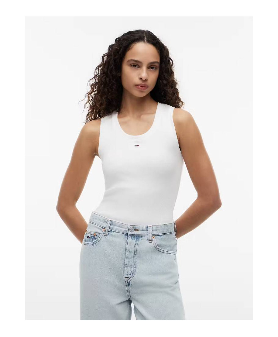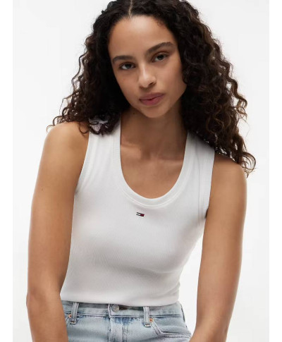 Canotta a costine donna Tommy Jeans dalla linea moderna, ideale per outfit primavera estate.