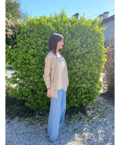 Top smanicato a girocollo e dettaglio asimmetrico frontale. Abbigliamento di qualita', confortevole e adatto a ogni occasione.