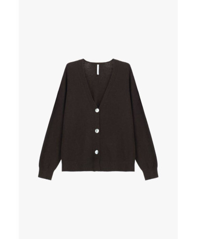 Cardigan morbido con bottoni, veste regolare. Caratterizzato da una linea rilassata e dettagli a coste su polsini, fondo e scollo. Chiusura frontale con grandi bottoni, perfetta per sovrapposizioni metropolitane e uno stile sofisticato. Ideale per chi desidera esprimersi attraverso silhouette essenziali e versatili, con opzioni cromatiche ricercate. Composizione: 50% viscosa, 27% poliestere, 23% poliammide.