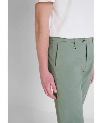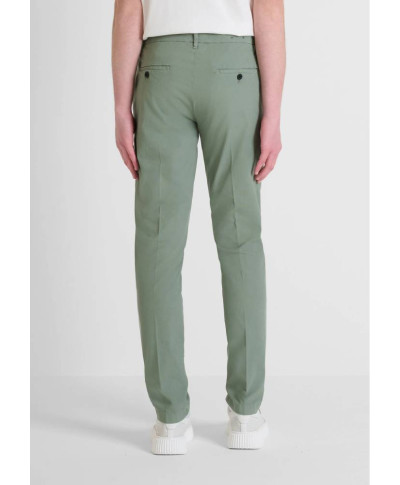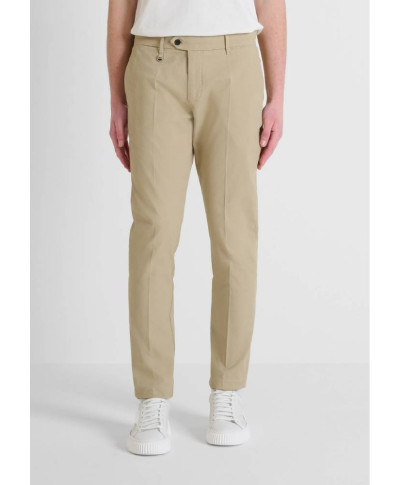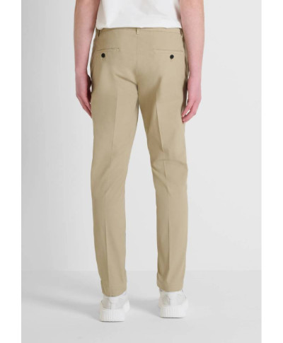 Questi pantaloni in cotone tinta unita presentano un design dal taglio classico e una vestibilità skinny. Il tessuto leggermente stretch e la chiusura zippata con bottone laterale assicurano un elevato comfort. Tasche a filetto e lo scudetto logato sul passante frontale completano questo modello. Composizione: 98% cotone, 2% elastan.