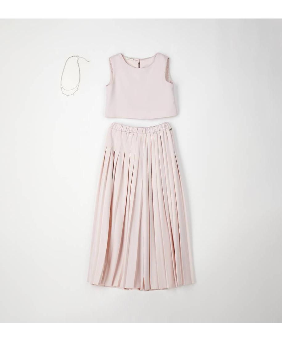Completo elegante per ragazza in jersey stretch composto da maglia e gonna. Composizione: 96% poliestere, 4% elastan.