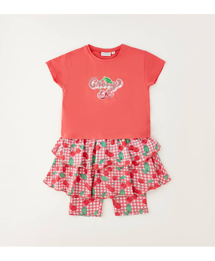 Completo bambina manica corta comodo e pratico per la giornata. Perfetto per l'abbigliamento bambini primavera estate, ideale per il gioco e le giornate all'aperto.