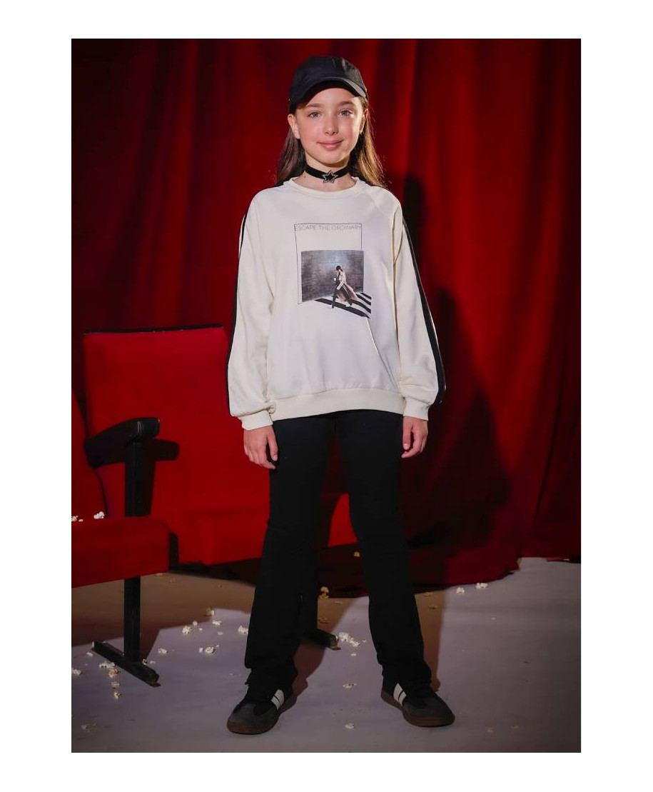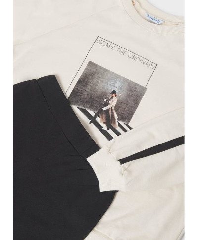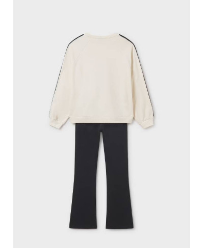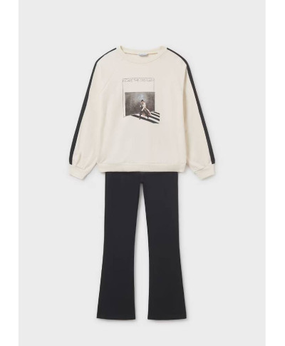 Completo per ragazza di felpa e leggings abbinati. Felpa manica lunga per ragazza con dettagli a contrasto. Girocollo. Orlo elasticizzato per una migliore vestibilit Elementi decorativi: Serigrafia (print). Pantalone modello leggings per ragazza. Pantalone ragazza svasato, ampio sulla parte inferiore. Elastico in vita.