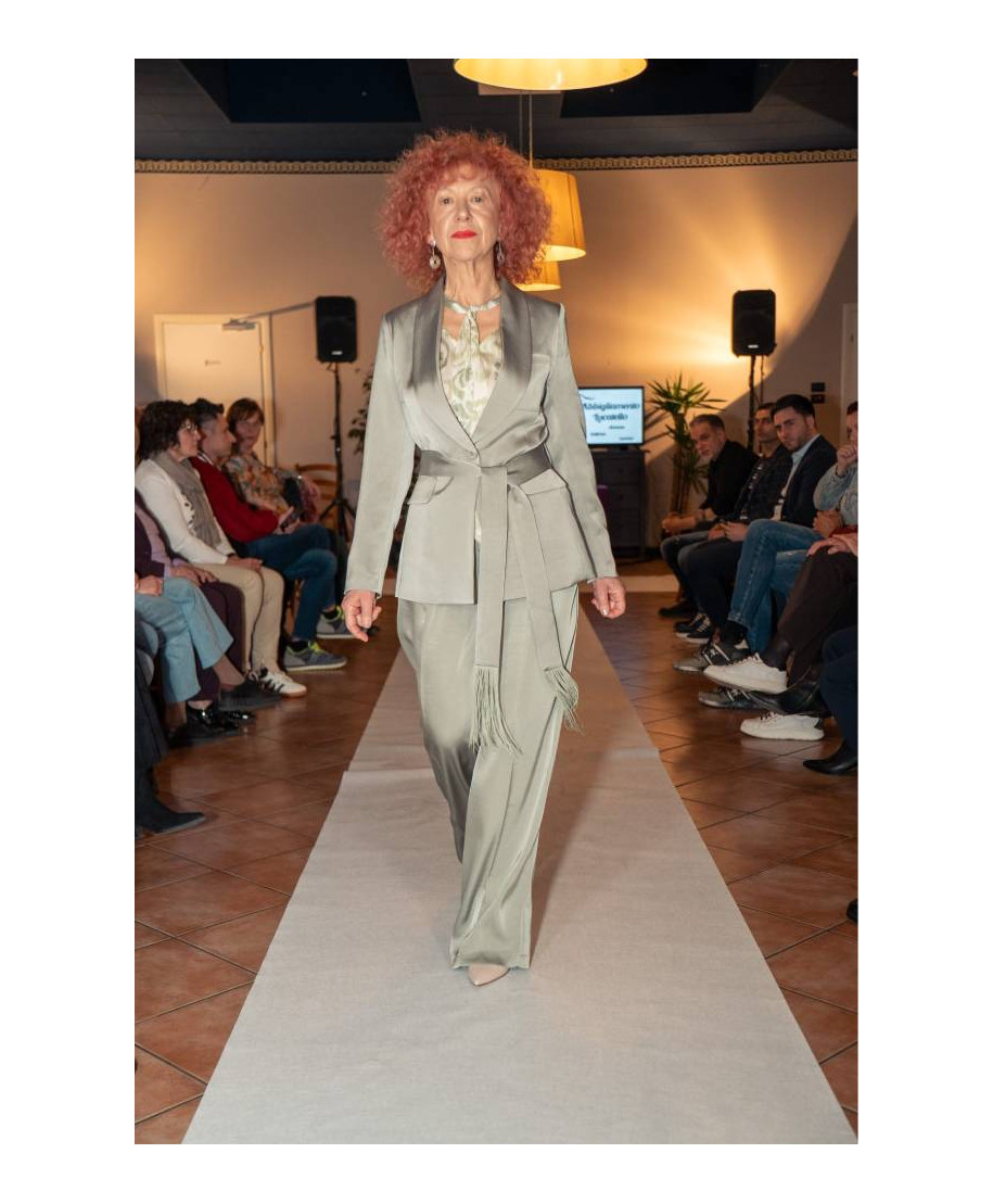 Completo giacca e pantalone in raso. Composizione: 100% poliestere. Versatile e moderno, perfetto per outfit eleganti.