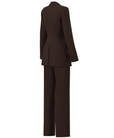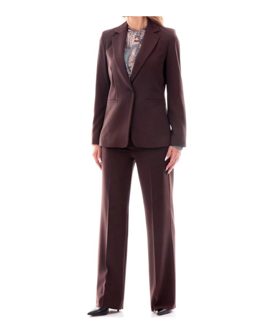 Completo in twill tecnico stretch, Fit semi aderente. Scollo con rever e chiusura monopetto, tasche con patta e fodera interna, pantalone dritto, piega stirata fronte e retro.