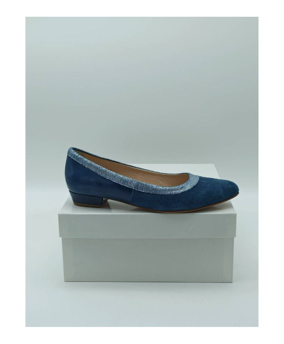 Décolleté artigianale realizzato interamente in vero camoscio, suola in cuoio.