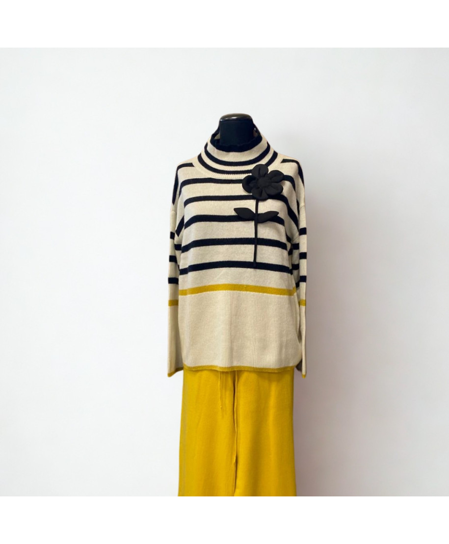 Dolcevita a righe. Composizione: 35% lana, 35% poliestere, 30% poliammide. Veste una taglia in pi
