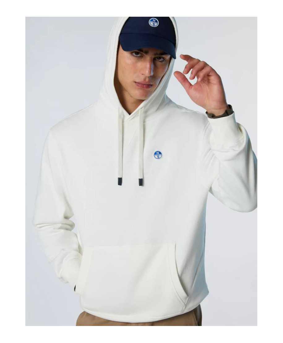 Felpa hoodie da uomo progettata per combinare comfort e rispetto per il pianeta perchrealizzato in cotone organico che riduce le emissioni e il consumo di acqua. Si caratterizza per la tasca a marsupio e il logo iconico applicato sul petto.