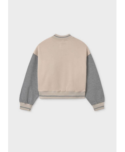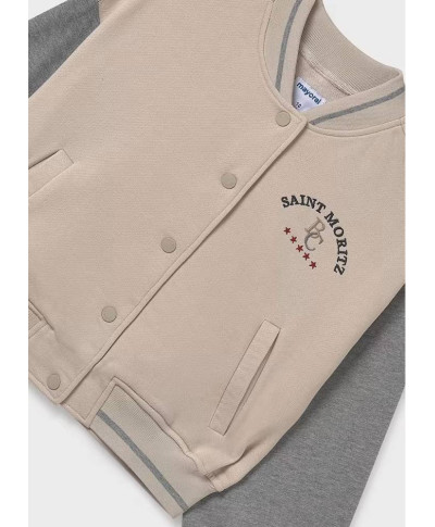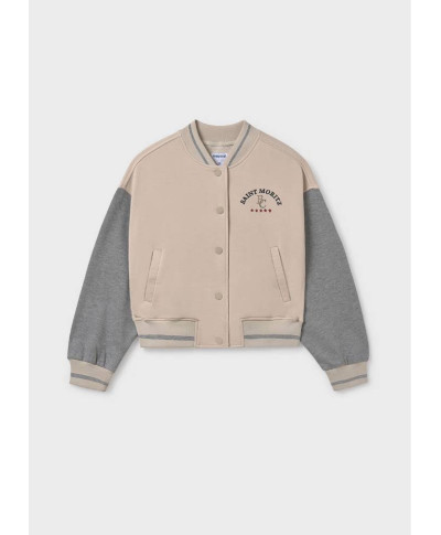 Giacca casual per ragazza. Collo bomber. Chiusura con bottoni a pressione nella parte anteriore. Tasche anteriori. Elementi decorativi: ricamo.