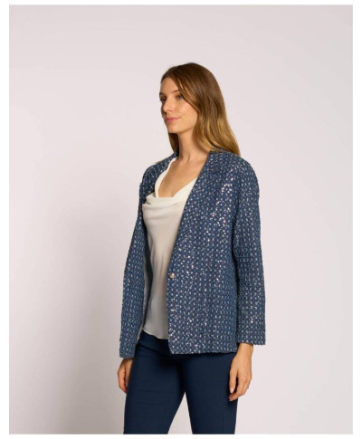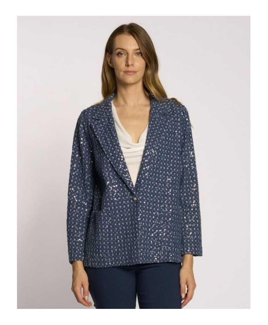 Giacca in jeans. E' un capo dall'aspetto moderno e grintoso, impreziosita da un luccicante ricamo in paillettes che le dona un tocco glamour. Il design classico completato da eleganti revers e pratiche tasche, che la rendono un capo versatile e funzionale.