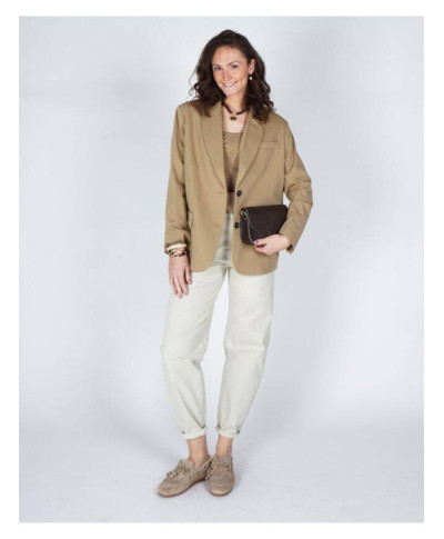 Blazer oversize con bottoni, elegante e contemporaneo. Perfetto per outfit formali e casual chic.