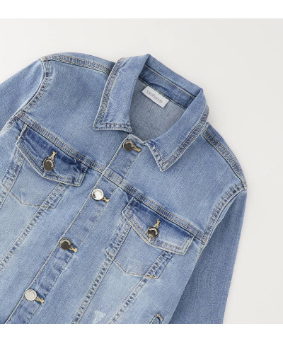 Giubbotto da bambina in denim stretch, lavato chiarissimo. Composizione: 97% cotone, 3% elastan.