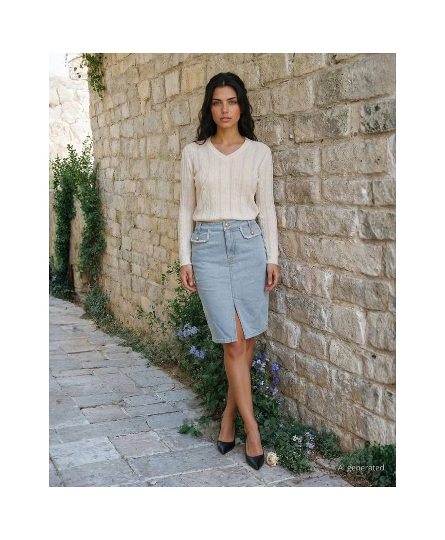 Gonna di jeans con pattine sfrangiate e spacco frontale- 70% Cotone, 28% Poliestere, 2% Elastan. Ideale per look quotidiani.