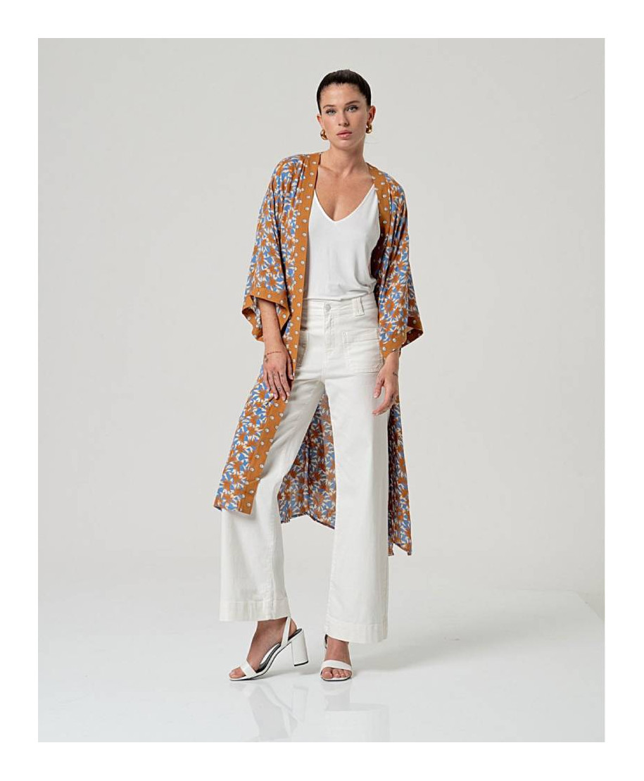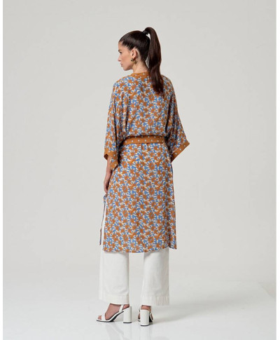 Kimono fluido donna con cintura e linea scorrevole. Indicato per completare look stratificati con stile leggero.