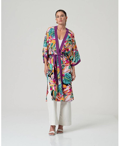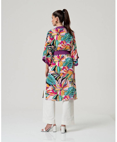 Kimono fluido donna con cintura e linea scorrevole. Perfetto per arricchire outfit quotidiani con carattere.