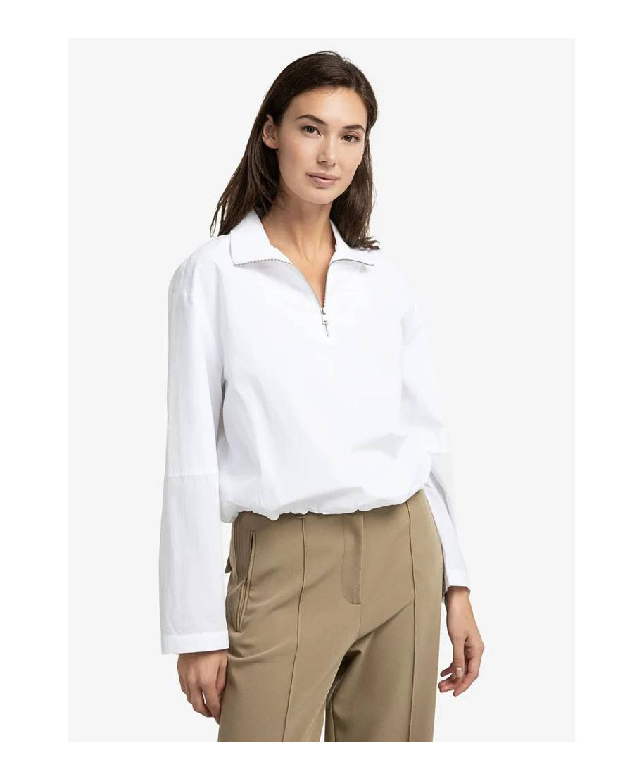 Blusa balloon con zip, femminile e leggera. Ideale per outfit eleganti e casual, perfetta per ogni stagione.
