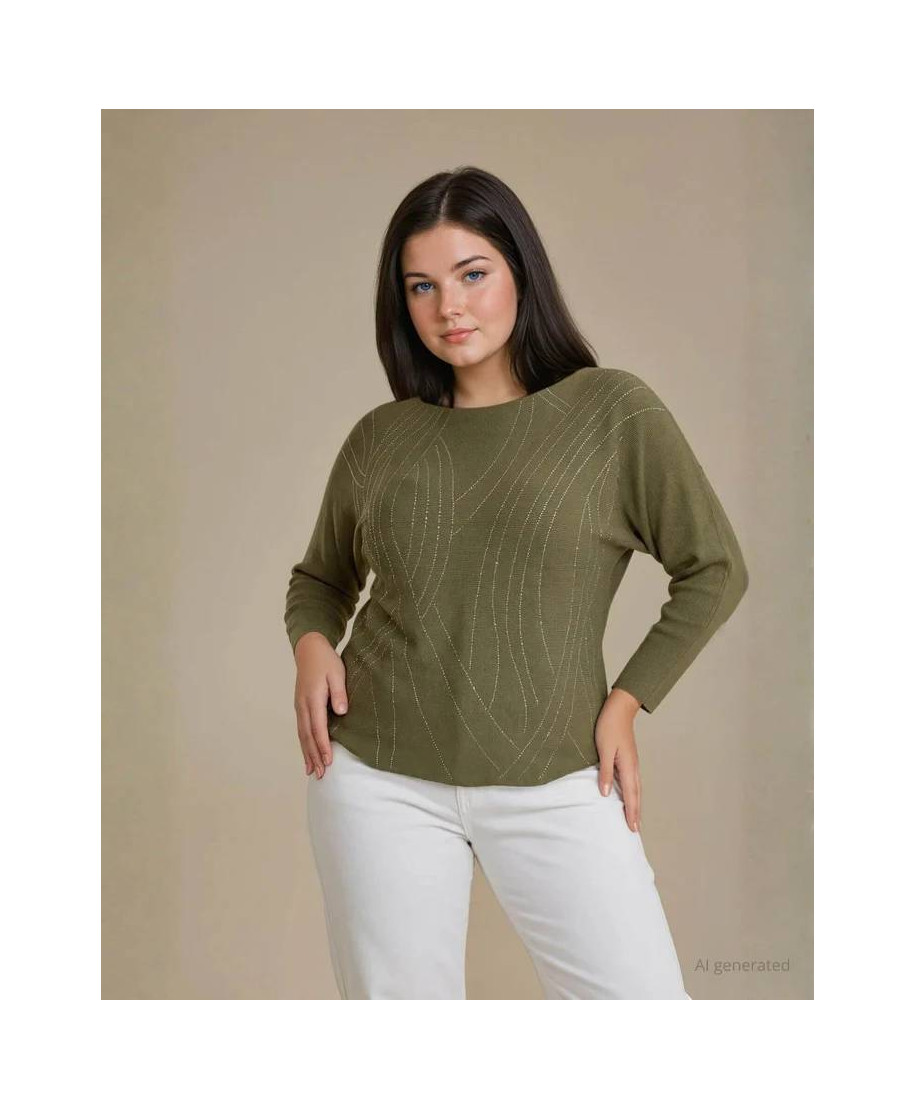 Maglia, curvy, a girocollo con maniche lunghe e strass sul davanti- 65% Viscosa, 35% Poliammide. Ideale per look quotidiani.
