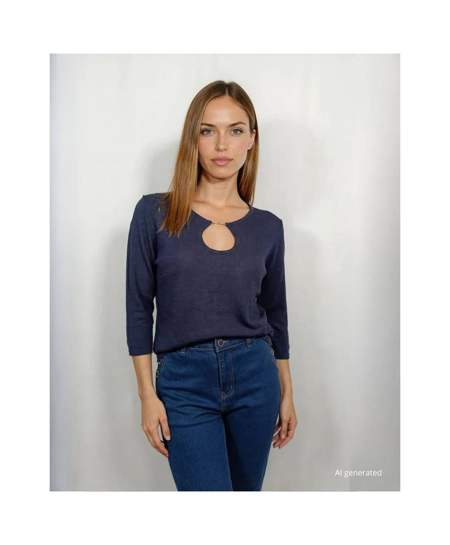 Maglia rasata maniche a 3/4 con goccia e barretta oro al collo- 80% Viscosa, 20% Poliammide. Ideale per look quotidiani.