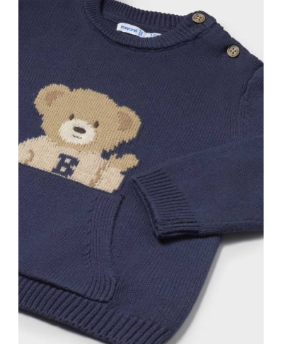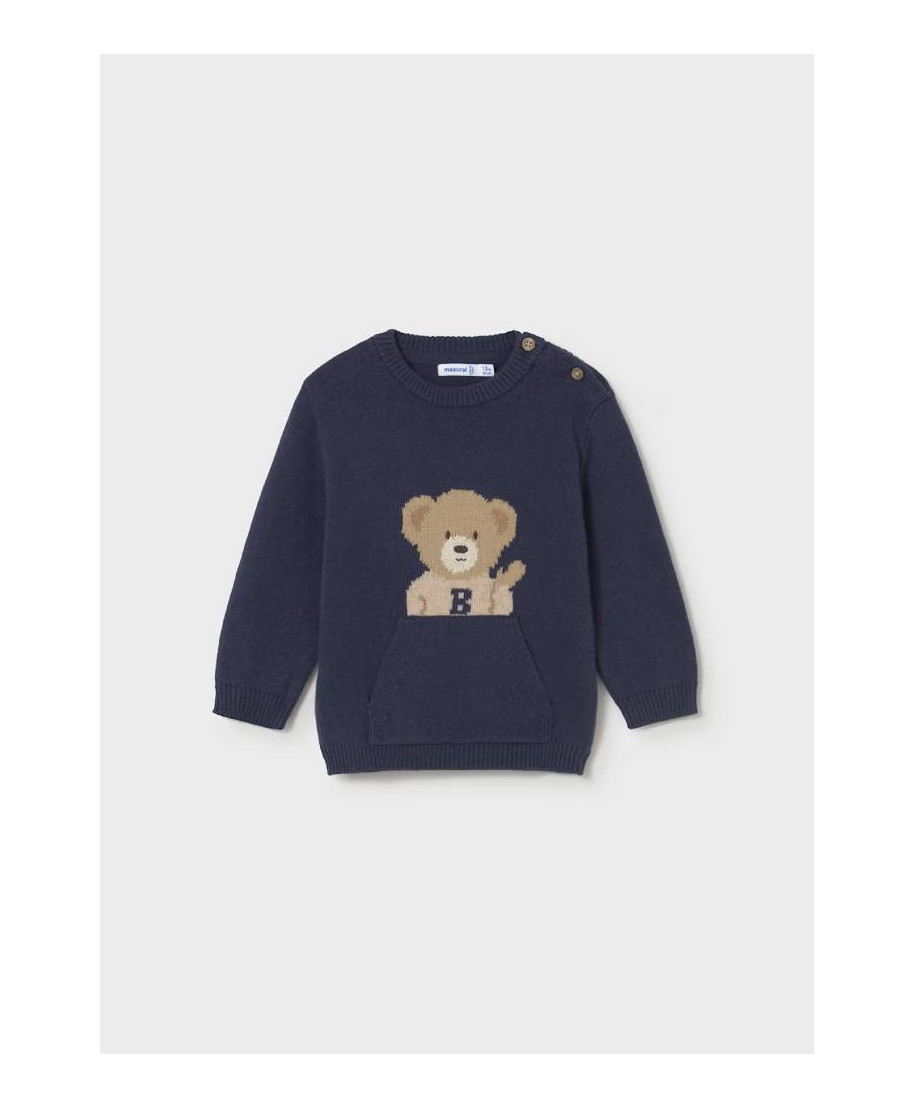 Maglione manica lunga per neonato. Girocollo. Chiusura con bottoni sulla spalla per facilitare la vestibilit Tasca funzionale nella parte anteriore. Elementi decorativi: ricamo.