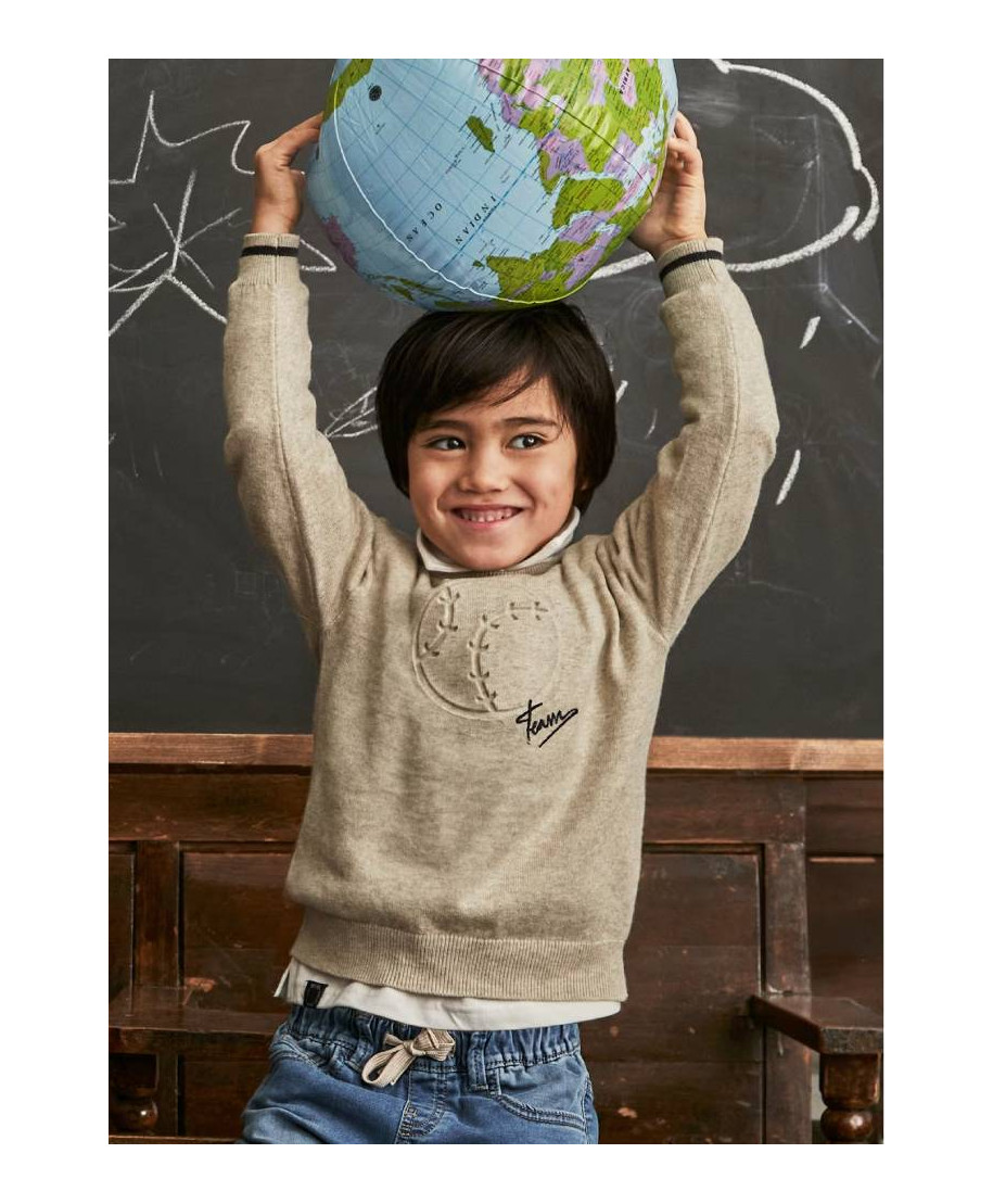 Maglione manica lunga per bambino con dettagli a contrasto. Girocollo. Elementi decorativi: ricamo, dettaglio in rilievo (embossed).