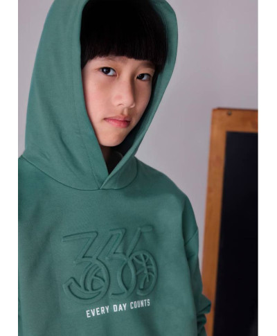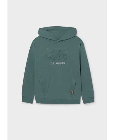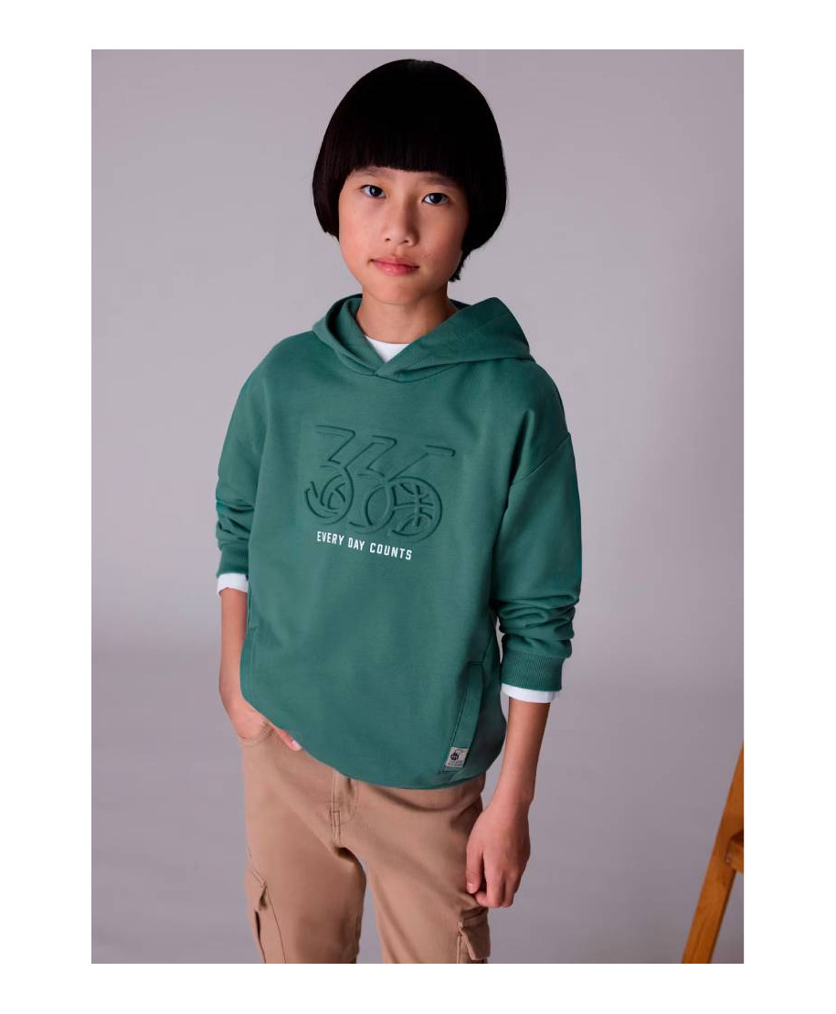 Felpa manica lunga per ragazzo. Colletto con cappuccio. Tasca funzionale nella parte anteriore. Elementi decorativi: dettaglio in rilievo (embossed), Serigrafia (print).