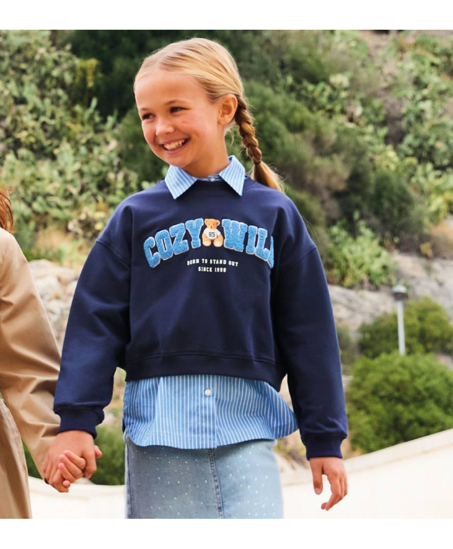 Felpa bambina con cappuccio. Adatta alla scuola e al tempo libero.