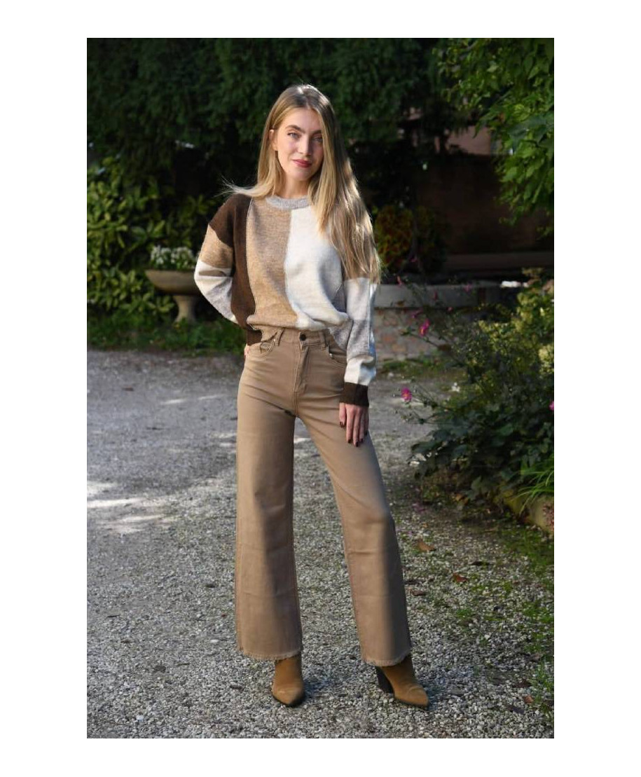 Maglione girocollo. Composizione: 30% viscosa, 26% poliestere, 21% nylon, 21% acrilico, 2% spandex.
