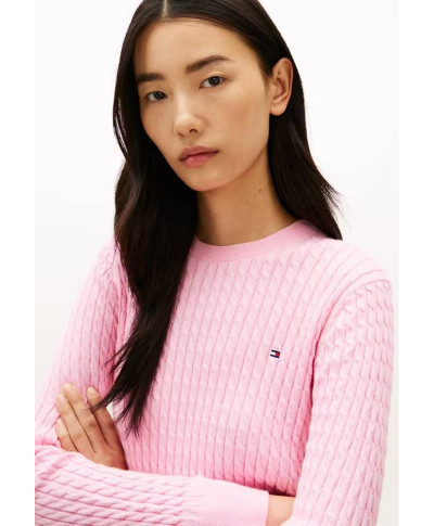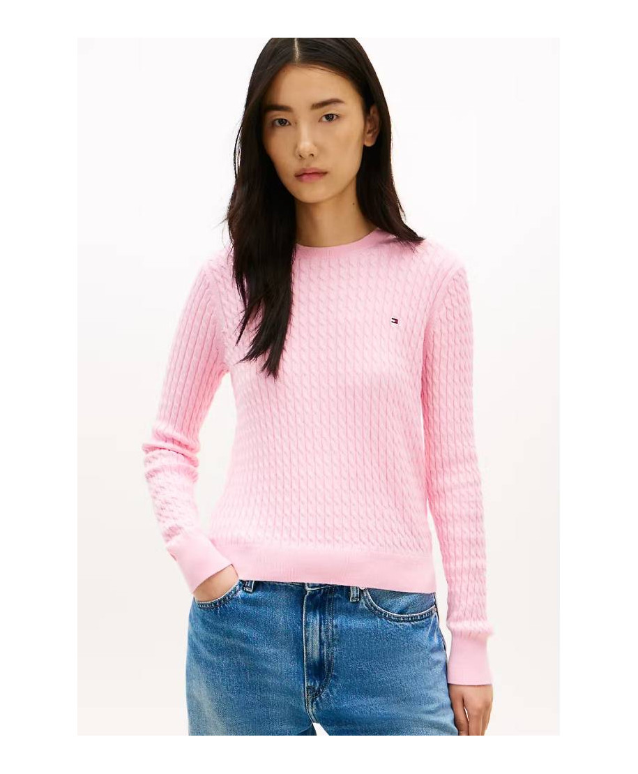Maglione donna girocollo in cotone con lavorazione cable dal gusto classico rivisitato. La texture a trecce dona profondita' e carattere al look mantenendo eleganza senza tempo. Ideale per outfit casual raffinati Spring 2026.