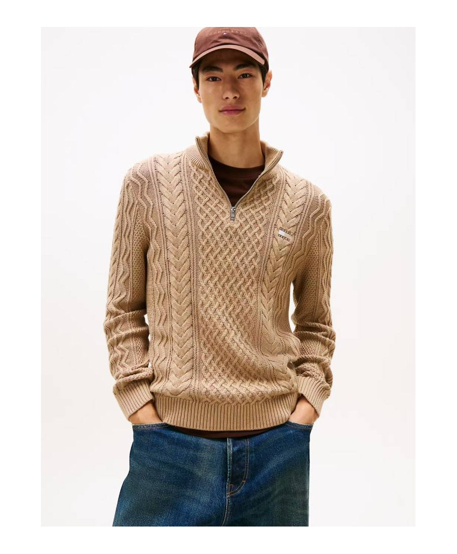 Maglione a treccia con zip. Collezione: autunno 2025. Fit: slim. Composizione: 100% cotone.