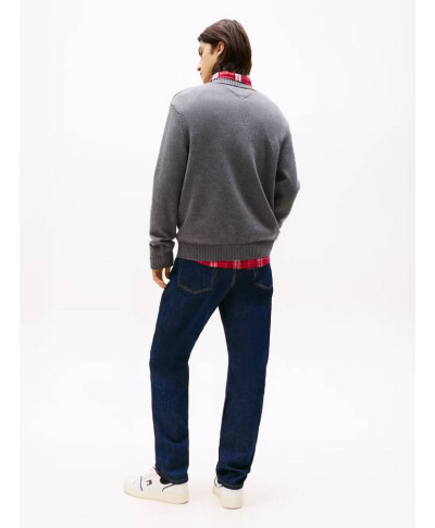 Maglione girocollo melange in puro cotone con bandiera Tommy. Collezione: autunno 2025. Fit: regolare. Composizione: 100% cotone.
