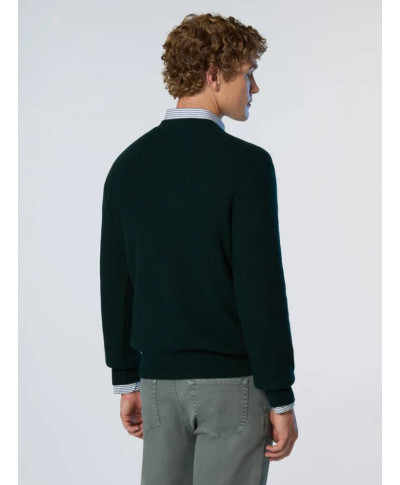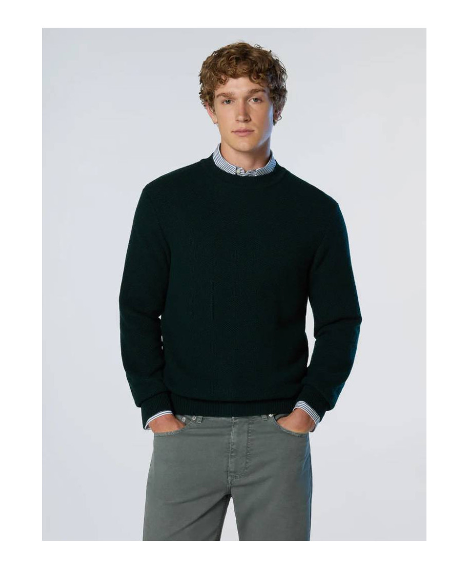 Maglione girocollo realizzato in misto cashmere e fibre riciclate che riduce la dispersione di rifiuti nellambiente. Si caratterizza per la lavorazione a nido dape dalleffetto tattile ricercato e la label North Sails al fondo.