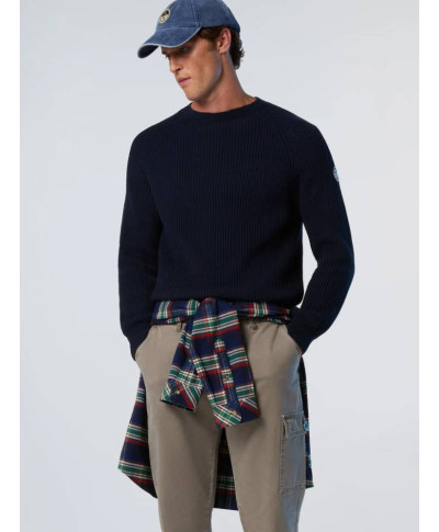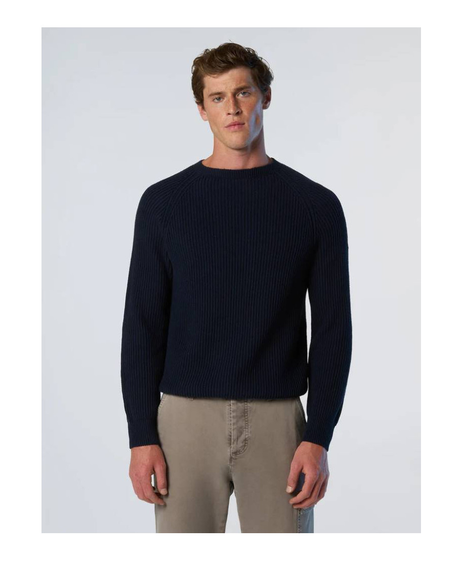Maglione a costa inglese richiama la storia North Sails legata al mondo della vela. Il modello realizzato in un morbido filato di misto cotone e lana tecnica riciclata che contribuisce a ridurre le emissioni nocive e il consumo di acqua rispetto alle fibre tradizionali. Il design con maniche raglan studiato per seguire delicatamente i movimenti, mentre la patch North Sails sulla manica aggiunge un tocco distintivo.