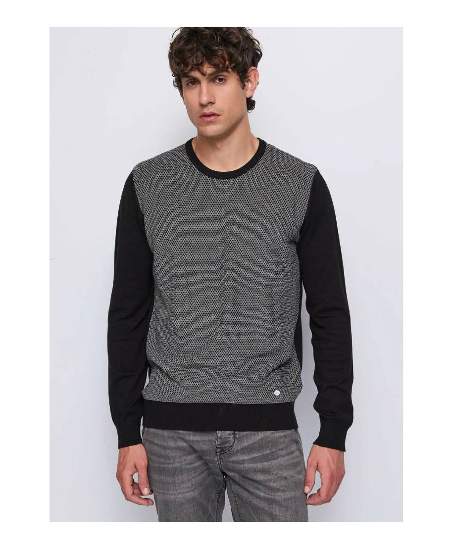 Maglia girocollo in misto viscosa a maniche lunghe. Motivo jacquard. Bordi a costine. Patch logata al fondo. Composizione: 70% viscosa, 30% poliammide.
