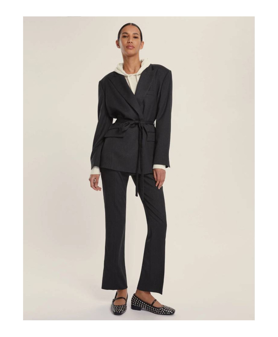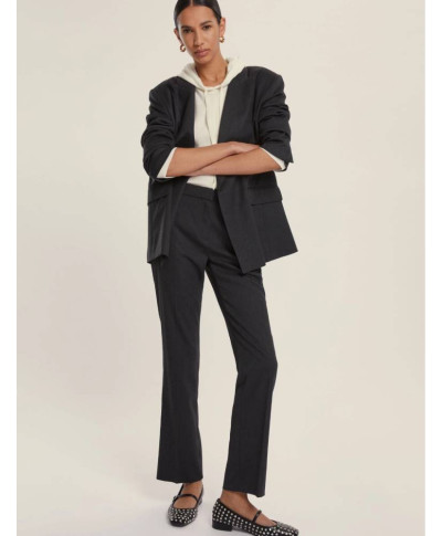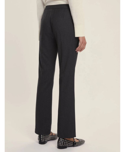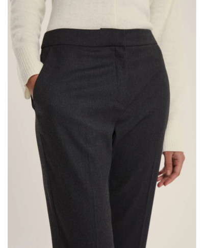 Pantalone in flanella di misto viscosa stretch. Fit dritto. Chiusura con gancio a uomo e zip nascosta. Tasche laterali alla francese. Piega stirata fronte e retro.